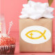 Golden Christian Fish Symbol with Crucifix Oval Sticker