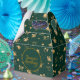 Elegant seamless pattern featuring golden bells, ribbons, and stars on a deep green background. Perfect for wrapping paper, festive stationery, mugs, and gift tags during the holiday season.
