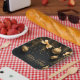 The rich black background adorned with golden accents exudes sophistication, creating the perfect backdrop for your festive feast.