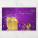 Glamourous magical Christmas illustration: Sparkling golden gift box next to gold and a purple christmas tree balls and golden pearls on an elegant purple bokeh background.