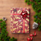 Pattern of Golden Christmas Holly with black and white berries on textured Pantone Samba Red background. ©Claudia Böttcher | www.colorofmagic.design
