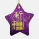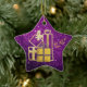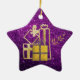 Beautiful Ceramic Star Ornament Featuring Golden Christmas Presents Purple Faux Glitter Design - Wonderful and Decorative for the Holidays!