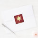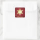 A golden star with snowflakes on a red bokeh background and Merry Christmas calligraphy script text.