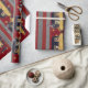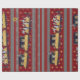 Golden Christmas Train Stripes Burgundy Grey Wrapping Paper