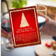 Our Golden Christmas Tree Foil Card shows a luxurious looking golden X'mas tree (printed in real gold foil) set against a red background with snowflakes and surrounded by a gold foil border. All text are fully customisable.