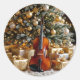 Golden Christmas Tree, Gifts and Violin Classic Round Sticker