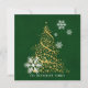 Rich seasonal green hues set off a faux gold glitter Christmas tree shape created of stars and accented with white snowflakes. The text on the back of this unique two-sided square holiday greeting is personalised by you.