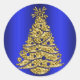 A colourful and decorative blue Christmas sticker featuring a glittering, golden Christmas tree on a metallic blue background, to add a sophisticated and elegant touch to your Christmas gifts or Christmas greetings this holiday season. (Designer notes: there is also matching wrapping paper, gift box, gift bag, envelope, ribbon and tissue paper with this design on, just click on the 'Available on other Products' link below).