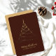 Golden Christmas Tree on Dark Red Minimalist Holiday Card
