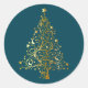 Golden Christmas Tree on Dark Teal Classic Round Sticker