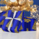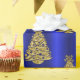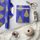 A colorful and decorative blue Christmas wrapping paper featuring a pattern of glittering, golden Christmas trees over a metallic blue background, to add a sophisticated and elegant touch to your Christmas gifts this holiday season. (Designer notes: there is also matching stickers, gift box, gift bag, gift tag, envelope, ribbon and tissue paper with this design on, just click on the 'Available on other Products' link below to check them out).
