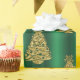 A colourful and decorative green Christmas wrapping paper featuring a pattern of glittering, golden Christmas trees over a metallic green background, to add a sophisticated and elegant touch to your Christmas gifts this holiday season. (Designer notes: there is also matching stickers, gift box, gift bag, gift tag, envelope, ribbon and tissue paper with this design on, just click on the 'Available on other Products' link below to check them out).