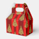 A colourful and decorative red Christmas favour box featuring a pattern of glittering, golden Christmas trees over a metallic red background, to add a sophisticated and elegant touch to your Christmas gift-giving this holiday season. (Designer notes: there is also matching wrapping paper, stickers, gift bag, gift tag, envelope, ribbon and tissue paper with this design on, just click on the 'Available on other Products' link below to check them out).
