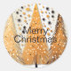 Golden Christmas Trees Shiny Snowflakes Holidays Classic Round Sticker