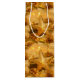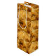 Elegant Christmas wine gift bag with a beautiful golden star ornament, bows, pearls, pine cones and sparkling Christmas lights pattern. See also: