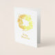 A golden Christmas wreath and the greeting, "Merry Christmas" grace the front of this foil Christmas card.