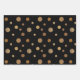 Golden Circles Polka Dots Geometric Black Wrapping Paper Sheet