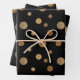 Golden Circles Polka Dots Geometric Black Wrapping Paper Sheets.