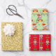 Golden Confetti, Christmas Elf, Nutcracker image. Modern golden, green and red gift wrapping papers.