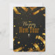 Featuring a dark background, it bursts with golden confetti and glitter pieces exploding outward, creating an energetic and festive vibe.