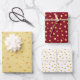 Golden Confetti on Golden, Burgundy Red & White Wrapping Paper Sheets. Modern wrapping papers.