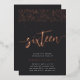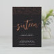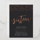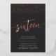 Celebrate her milestone birthday with these chic 16th birthday party invitations featuring "sixteen" in modern rose gold foil hand sketched script lettering and topped with confetti. Personalise with your party details beneath. A unforgettable, luxe choice for fabulous sweet sixteen birthday celebrations.