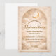 A luminous celestial design featuring delicate crescent moons and scattered constellation stars across a warm parchment background. A refined gold border frames the composition, while elegant script typography creates a graceful focal point worthy of such a meaningful milestone. The soft ivory and champagne tones give the entire piece a timeless, radiant glow. Perfect for a quinceañera celebration that feels romantic, elevated, and touched by starlight.