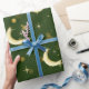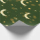 This Golden Crescent Moon Bokeh Seamless Pattern wrapping paper radiates celestial elegance with glowing moons and twinkling stars set against a deep green background. The soft bokeh light effects add warmth and dimension, creating a magical, dreamy night-sky aesthetic.