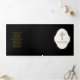 Traditional European look death announcement, elegantly done in black with gold tone accents and in a tri fold style. Personalise with your loved one's photograph and all the text to suit your needs. Can be used as a funeral mourning card too. Matching black lined envelopes available.