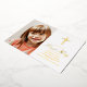 Announce your child's special day with this Minimalist Golden Cross Holy First Communion Photo Real Foil Invitation. The design features real foil Christian golden cross on a clean white background. Your child’s photo is placed beside the event details, creating a modern and elegant layout. Ideal for boys or girls, this invitation is easy to personalise.