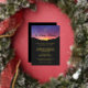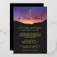 Funeral service invitation featuring a photo of the sun rising behind the black silhouette of mountains. A gold cross decorates the sky, above the words In Loving Memory in black script. Add your invitation wording in elegant gold foil fonts.