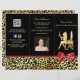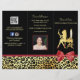 A glamourous hair salon trifold price list flyer with a woman wearing a gold crown. The background is decorated with a trendy black and gold leopard print and a girly red bow. Flat printed Image, NOT metallic.