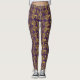 Golden damask swirl floral print on purple leggings