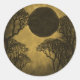 Grungy and cool Dark Forest Eclipse Stickers in gold featuring a quiet forest scene with a lunar eclipse. These digital art stickers are perfect for many uses! Customise with your own text.