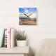 Experience the serene beauty of solitude with our "Golden Dawn: Solitude by the Sea" wall clock. Capture the feeling of being alone on the seashore, where the sand is bathed in the first light of day, turning a radiant gold. Let the calls of seabirds and the rhythmic pounding of the surf transport you to this tranquil moment. The brilliant blue sky, accented with wisps of white and gold clouds, adds to the breathtaking simplicity of this peaceful dawn.