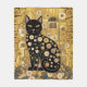Golden Decorative Gustav Klimt Style Black Cat Art Fleece Blanket