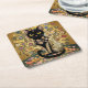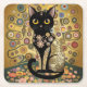 Golden Decorative Gustav Klimt Style Black Cat Art Square Paper Coaster