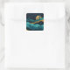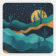 Golden Desert Nightscape – Abstract Cactus Art Square Sticker