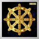 Golden Dharma Wheel Buddhism And Hinduism Symbol the principle of cosmic order and the teaching or religion of the Buddha.