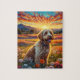 Golden Doodle dog in beautiful field of flowers with sunset. Puzzles, puzzles in tins, planners, notebooks with this design in my stores. Add text to personalize.. Lots of pet and scenery designs in my stores. Add this design to other products. Add text.