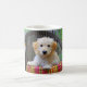 This golden doodle puppy finds a cosy spot on a patio chair.