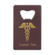 Double snake caduceus. Gold colour icon. Custom background colour. Custom text on both sides.