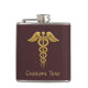 Double snake caduceus. Gold colour icon. Custom background colour. Custom text.