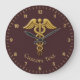 Double snake caduceus. Gold colour icon. Custom background colour. Custom text.
