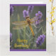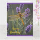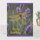 This birthday card features a beautiful golden dragonfly in a field of lavender.
