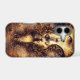 The case’s monochromatic palette—rich golds, sepias, ochres, and deep browns—evokes the warmth of aged metal and sun‑kissed parchment. Dramatic highlights illuminate the smooth contours of the faces and the ornate golden filigree, while deeper shadows add mystery and dimension.
