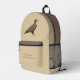 A backpack with an illustration of a Golden Eagle (Aquila chrysaetos) on a light brown background and touches of darker brown colours: a majestic wild bird of prey for lovers of wildlife raptors! A nice gift for a lover of nature or for school!