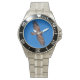 Has heft and feel of expensive stainless steel quartz watches. Good band with safety catch. I removed links, which is easy because engraved arrows show direction to push the linking pins. As always by this seller, the image (a railroad logo) is a perfect reproduction of my emailed image, and is precisely spaced and aligned.