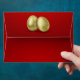Glamourous illustration with 2 golden easter eggs on a red background. Matching greeting card for this envelope: