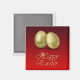 Glamourous illustration with 2 golden easter eggs on a red background.